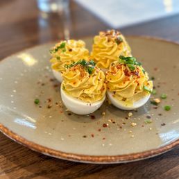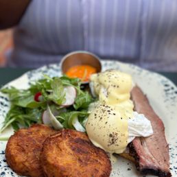 Highly recommend making a reservation (even for a small group) as this place seems to always be packed. It's a decently sized restaurant with an outdoor patio area as well. If you're craving some comfort food, this is definitely the place to go. We got some deviled eggs and cornbread to start, and both were delicious! I followed with a veggie benny. The black bean patty was so good and not dry at all. The biscuit that it was on was so flaky and buttery. Absolutely loved this meal and will be coming back for sure!